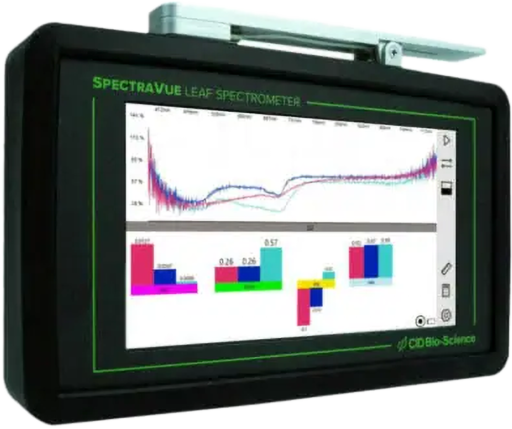 Das CI-710s SpectraVue ist ein handliches Blattspektrometer zur schnellen und zerstörungsfreien Messung von Reflexion, Transmission und Absorption im sichtbaren und nah-infraroten Bereich (360–1100 nm).